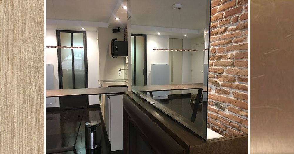 Le premier axe de transformation a été l’ouverture des volumes. Loin de se contenter d’abattre quelques cloisons, l’idée maîtresse était d’amplifier la perception de l’espace en optimisant la circulation de la lumière naturelle. Pour cela, un élément central a été introduit : les miroirs. Placés stratégiquement, ils captent et diffusent la lumière à travers l’appartement, décuplant ainsi la clarté et donnant l’illusion d’un intérieur plus vaste. Autre point clé : la reconfiguration totale de la salle d’eau. Dans un espace aussi réduit, chaque centimètre compte. Une attention particulière a été portée à l’optimisation de la surface, à travers un réaménagement intelligent qui permet de libérer du volume tout en intégrant des équipements de standing.